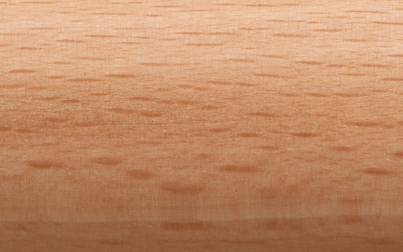 淡いピンクがかった明るい色味と、きめ細かな斑点状の木目が特徴。弾力性があり曲げ加工に適しているため、椅子の背もたれなどに多用されます。上品な印象で、子供用玩具にもよく使われる安全な素材です。