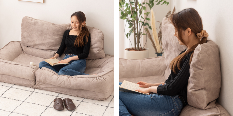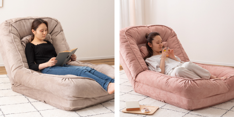 リクライニング機能付きで、「座椅子・ソファ・ベッド」3つのスタイルを楽しめるアイテム。