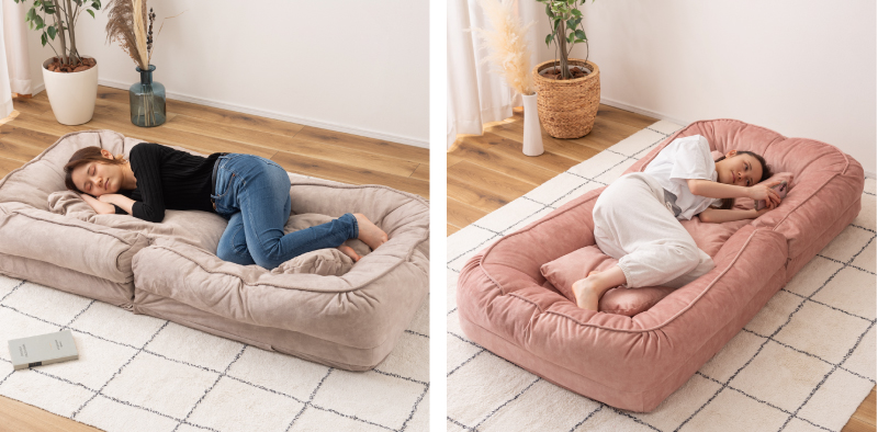 フルフラットにして、クッションを背もたれにすれば「ソファスタイル」に。