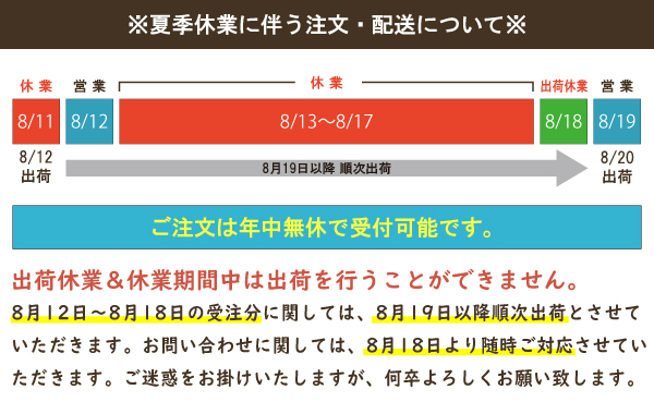 夏季長期休業に伴う注文・配送についてお知らせ