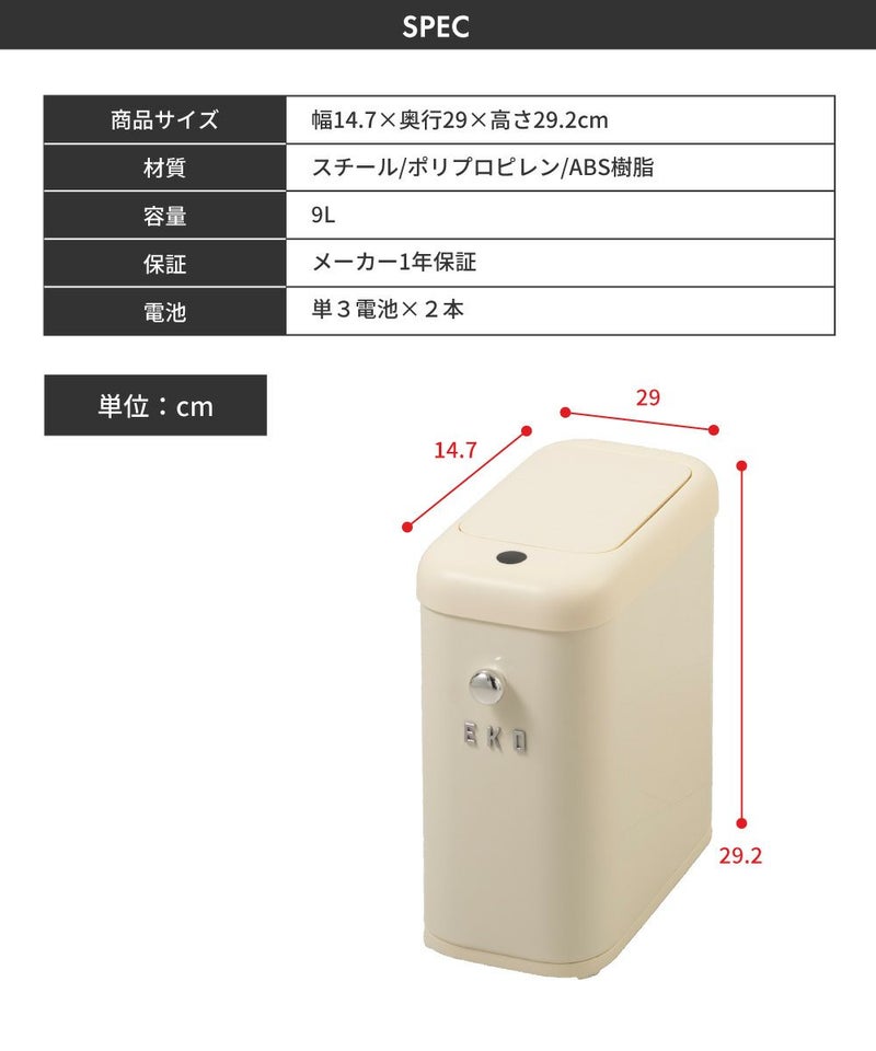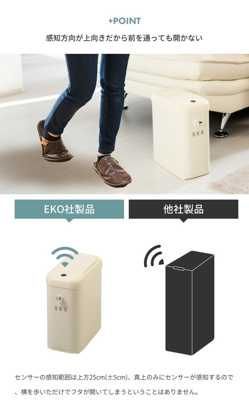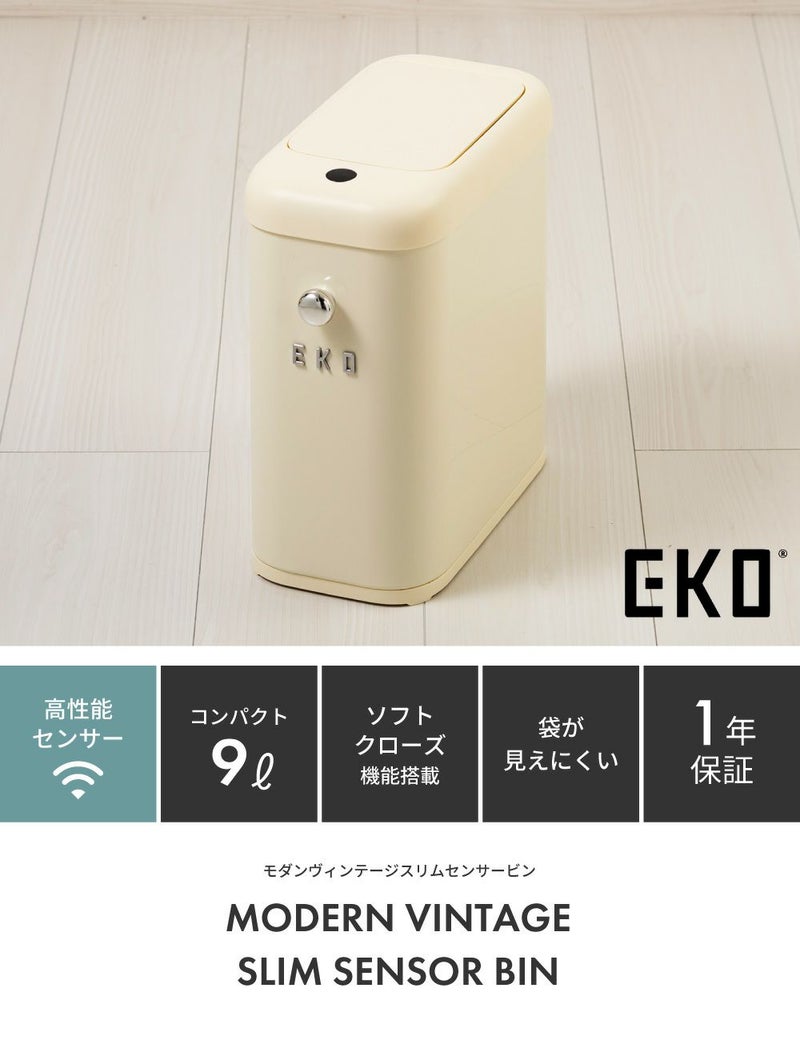 高性能センサーで使い勝手抜群 EKO ごみ箱 9リットル 自動開閉 ゴミ箱 9L 見えない センサー 新生活 一人暮らし 模様替え|モダンヴィンテージスリムセンサービン