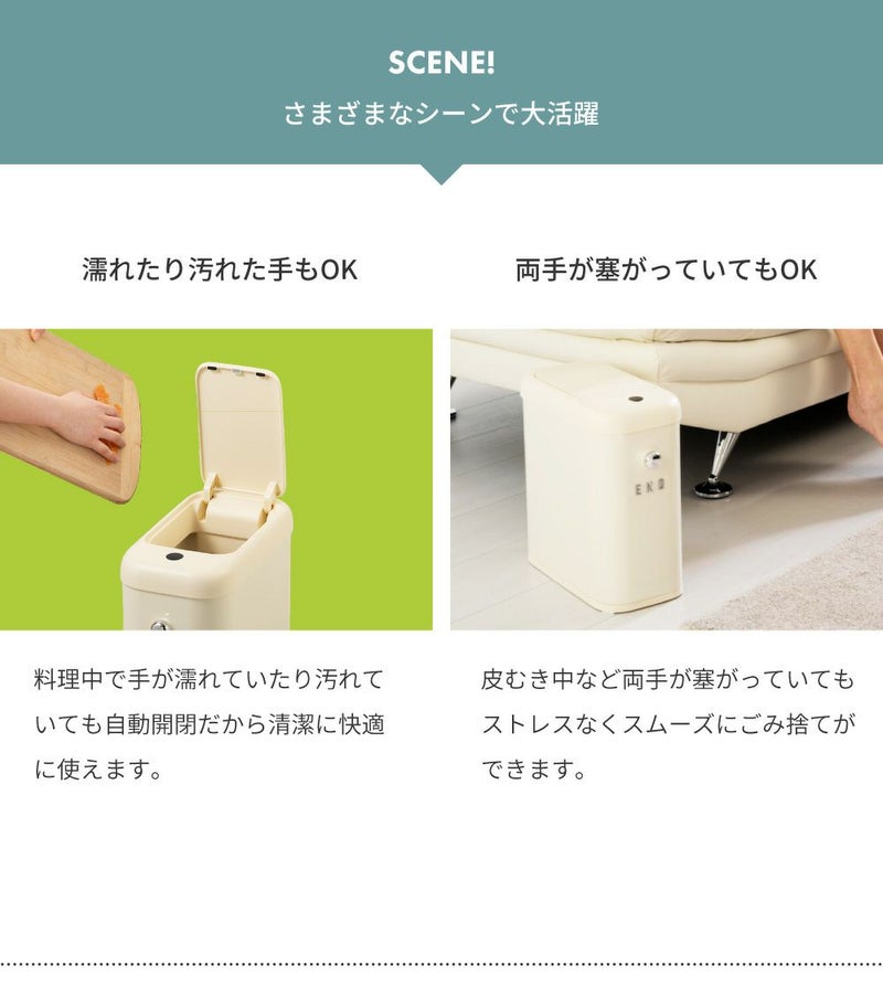 手をかざすだけでフタが開くのでスムーズにゴミ捨てができます。