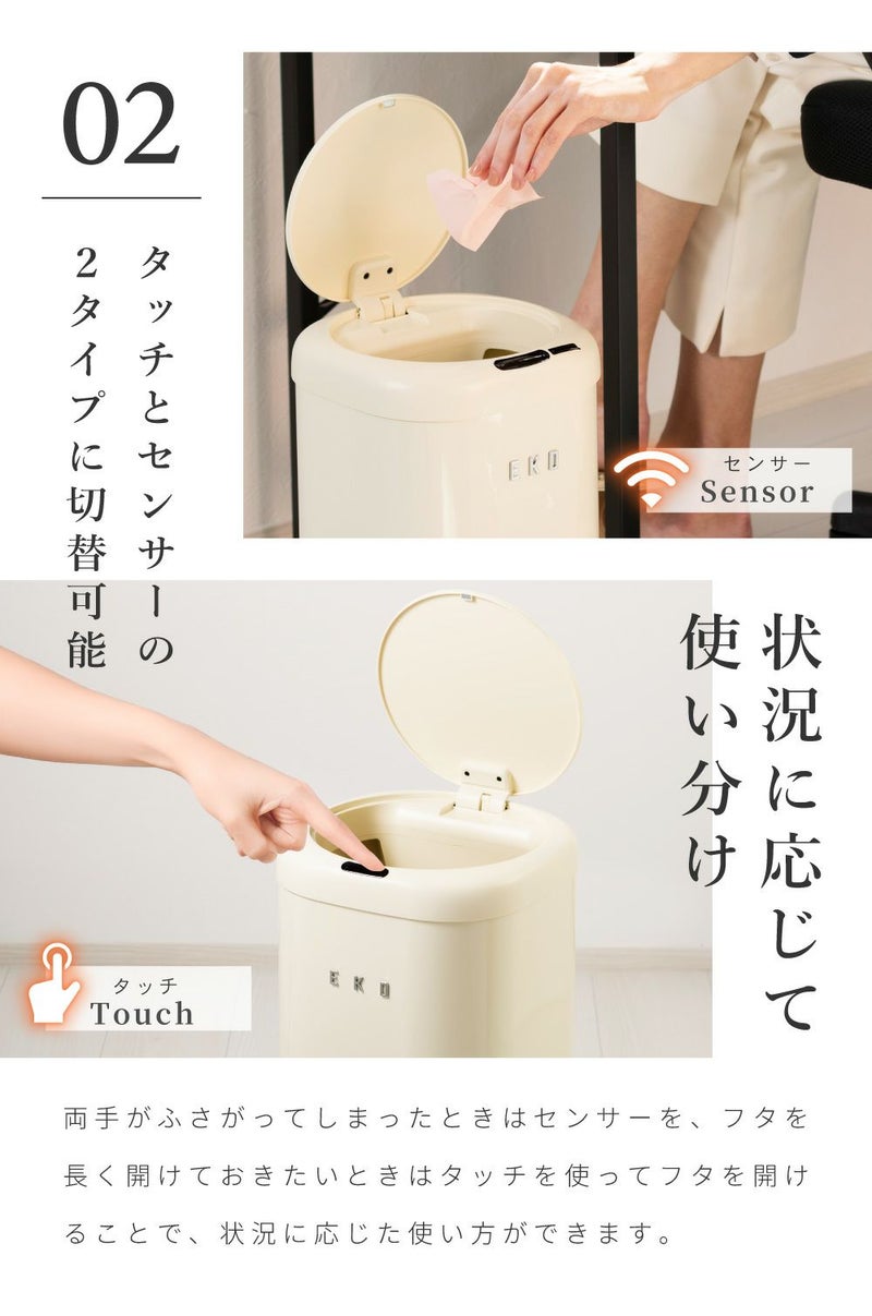 自動開閉で衛生的 EKO ごみ箱 12リットル 28リットル 50リットル 2段 自動開閉|モダンヴィンテージ センサービン