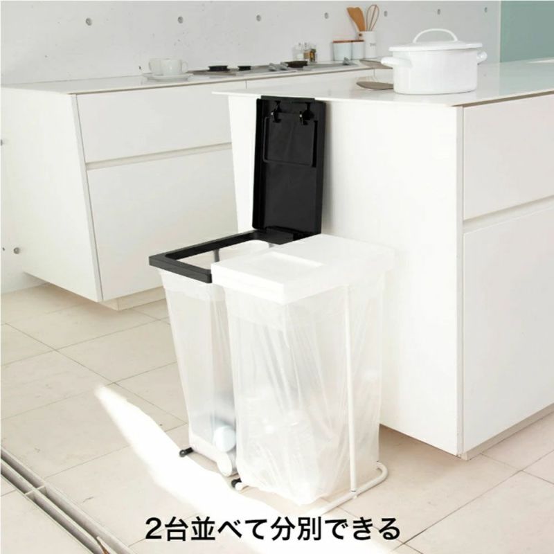ゴミ袋ホルダー プッシュフタ付き ダストボックス 分別ゴミ箱 レジ袋 ポリ袋 ふた付き カウンター下 30L 45L 45リットル おしゃれ キッチン ホワイト ブラック