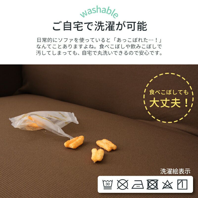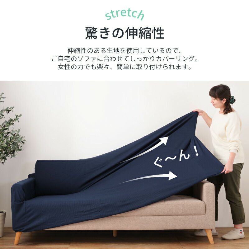 伸縮性のある生地を使用しているので、ご自宅のソファに合わせてしっかりカバーリング。