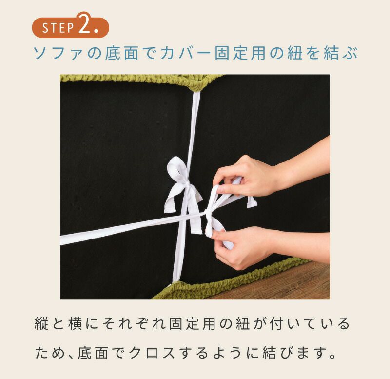 伸縮性のある生地を使用しているので、ご自宅のソファに合わせてしっかりカバーリング。