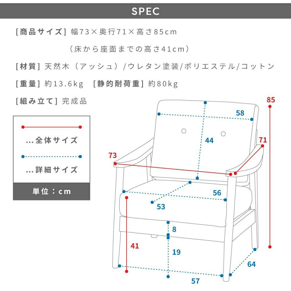 他の画像を見る シックで落ち着きのある1人掛けソファ ソファ 一人掛け 1人掛け グレー ネイビー 北欧 西海岸 おしゃれ シンプル|THORA 送料無料 ¥ 44,000 税込 (0) お気に入りに登録する
