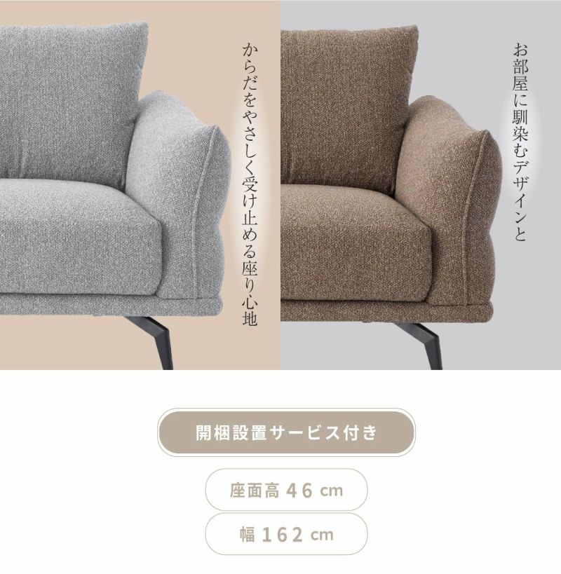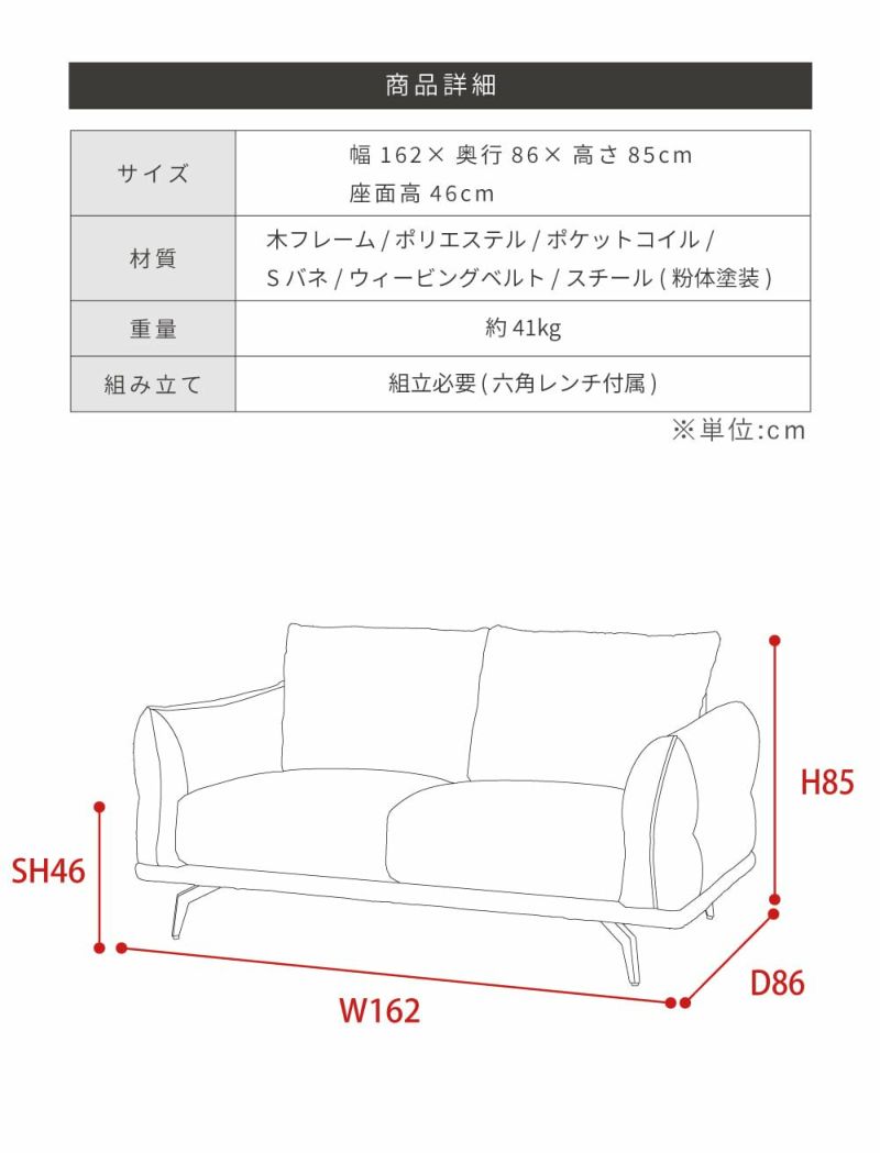 幅は162cmと2人でゆったりと座れるサイズ感です。