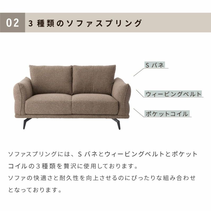 材質 木フレーム/ポケットコイル/Sバネ/ウィービングベルト/スチール(粉体塗装)/ポリエステル