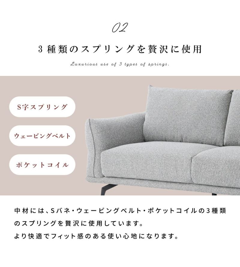 材質 木フレーム/ポケットコイル/Sバネ/ウィービングベルト/スチール(粉体塗装)/ポリエステル