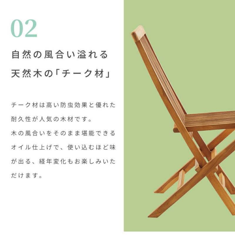 ●ナチュラルな天然木の折りたたみチェアで、庭先にカフェのような空間を。