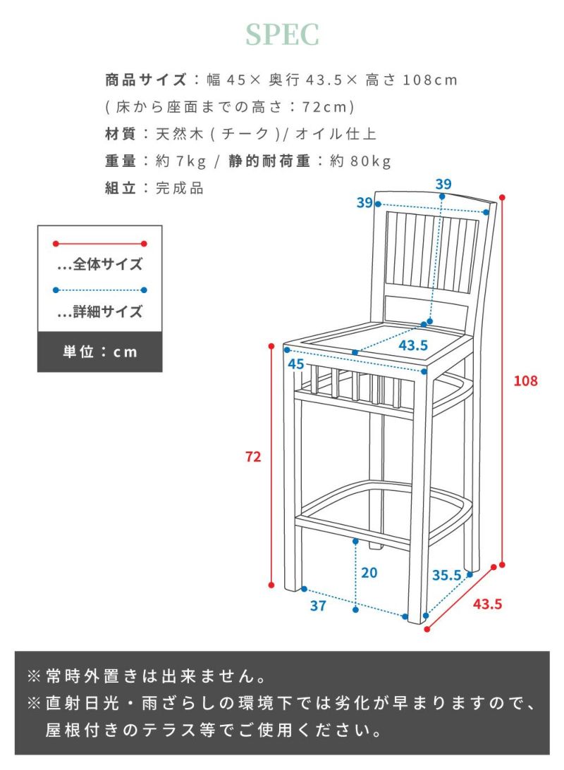 カウンターチェア 椅子 チェア ハイチェア 天然木 木製 おしゃれ シンプル 椅子 庭 ガーデン テラス 幅108cm 腰掛 カントリー ナチュラル 木目 北欧 キッチン