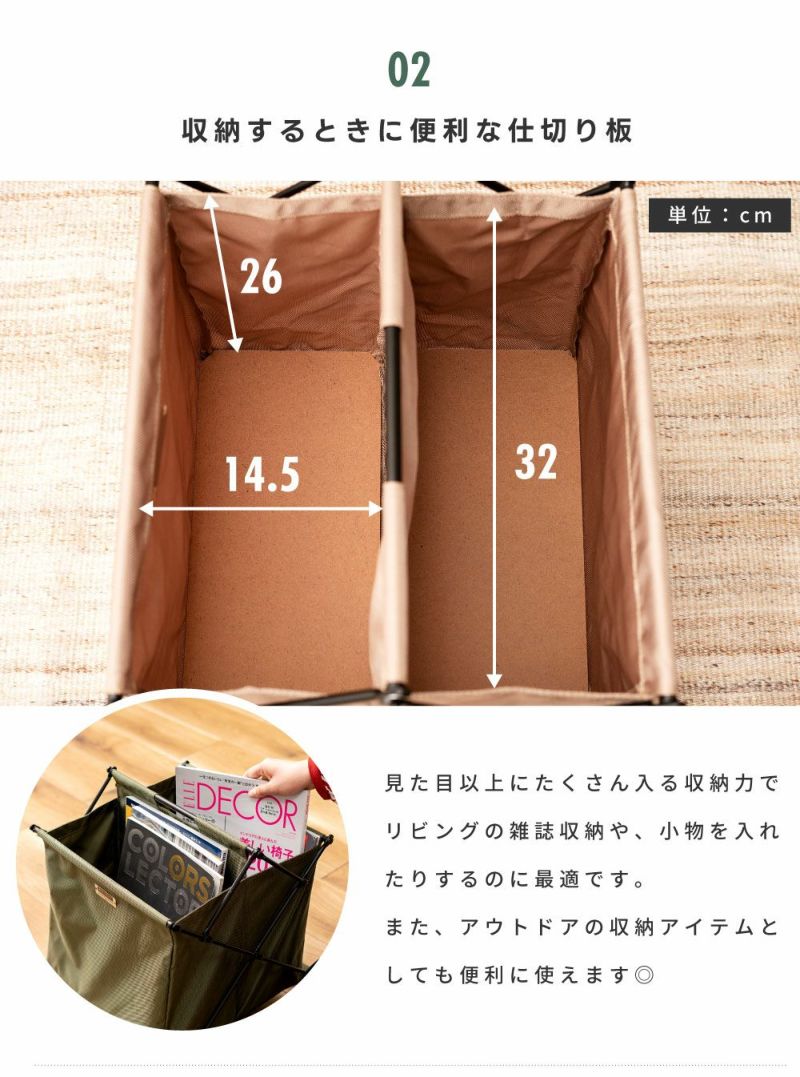 収納分けできる仕切り付き バスケット 折りたたみバスケット おしゃれ スリム 折りたたみ シンプル 収納|VARON