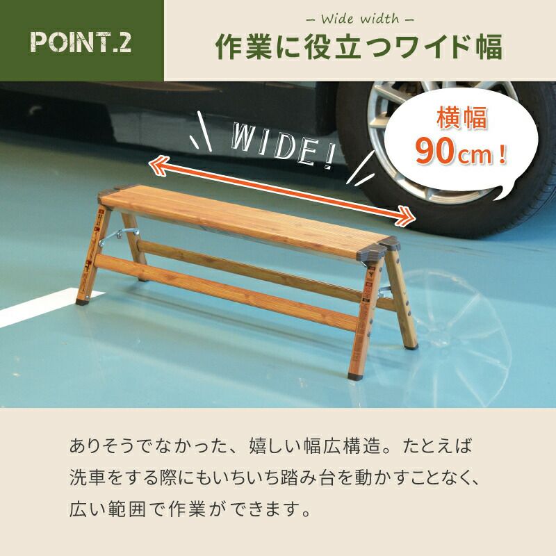 たとえば洗車をする際にもいちいち踏み台を動かすことなく、広い範囲で作業ができます。