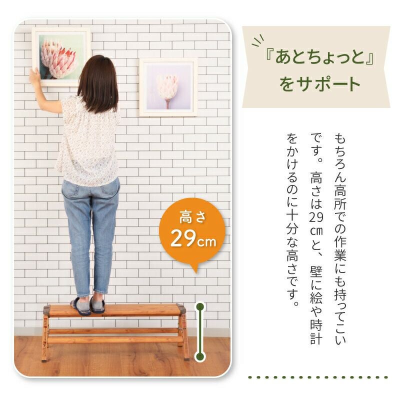 木目仕上げのナチュラルな見た目でお部屋にもすっと馴染む、お洒落なステップスツールです。