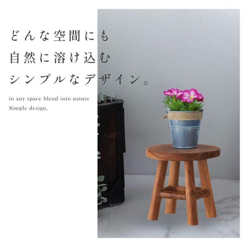 フラワースタンド プランタースタンド 花台 小さい 高さ19cm 室内 屋外 木製 天然木 チーク ミニ コンパクト おしゃれ 丸 円 ベランダ 木 省スペース 幅19cm 鉢 鉢植え 植木鉢 玄関 観葉植物 庭 プランター 収納 収納棚 棚付き 個体差 手作り 木目 ブラウン 茶色
