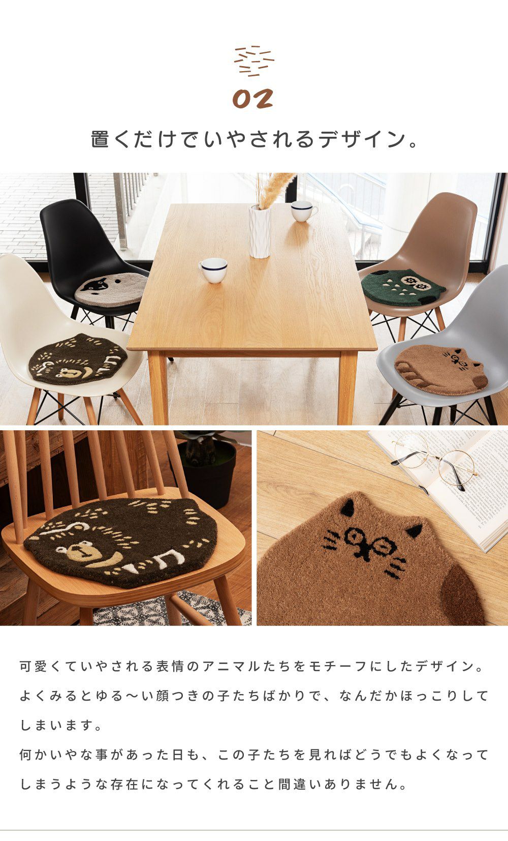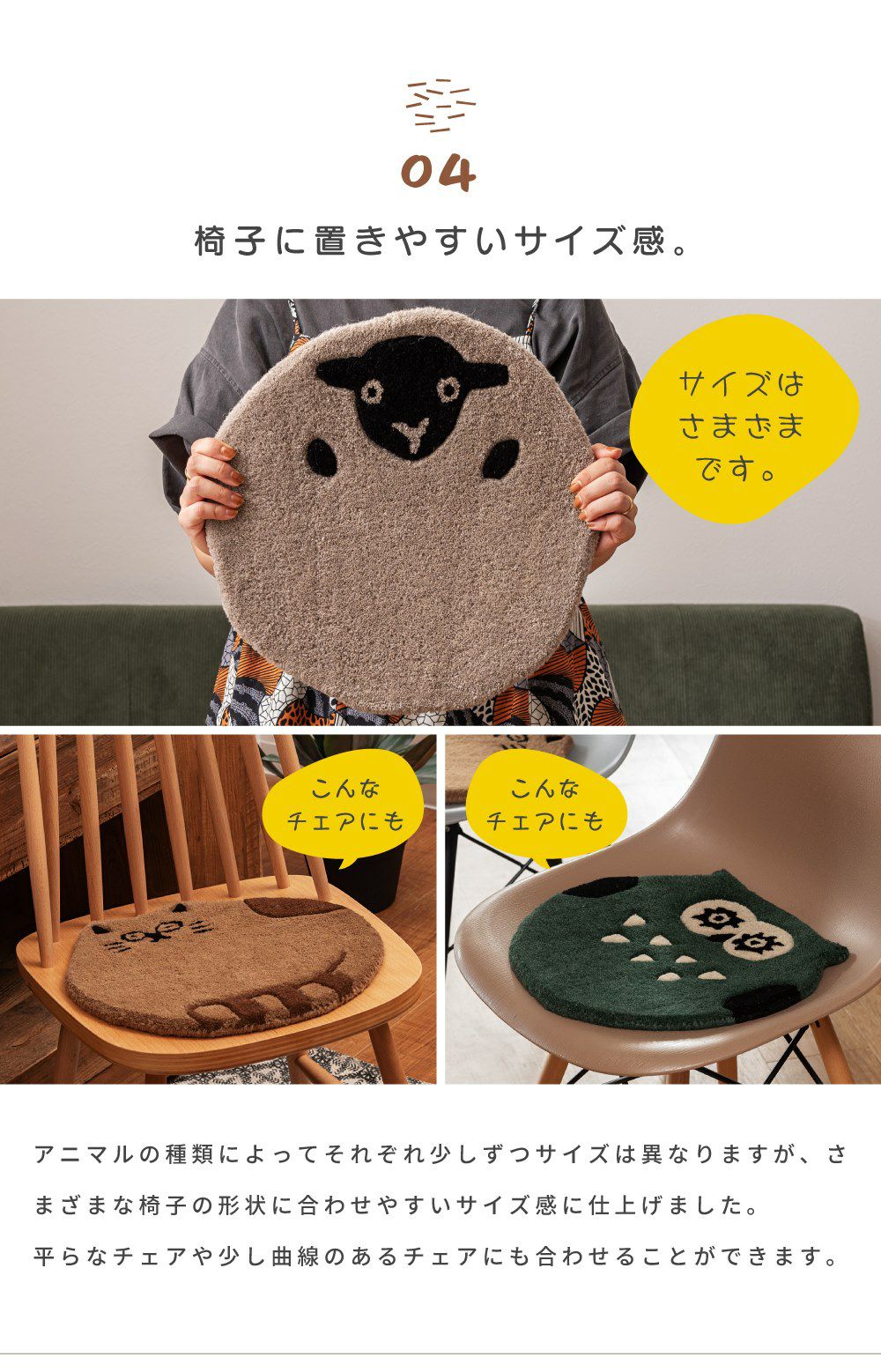 他の画像を見る ナチュラルカラーのアニマルマット チェアマット チェアパッド チェアクッション シートクッション 北欧 イス|FABURICO 完成品 販売価格 ¥ 3,696 税込 (0) お気に入りに登録する