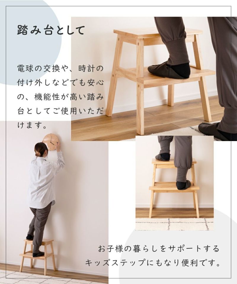 コンパクトなのに安心の安定感 踏み台 ステップ台 脚立 2段 木製 天然木 ナチュラル|FLORA