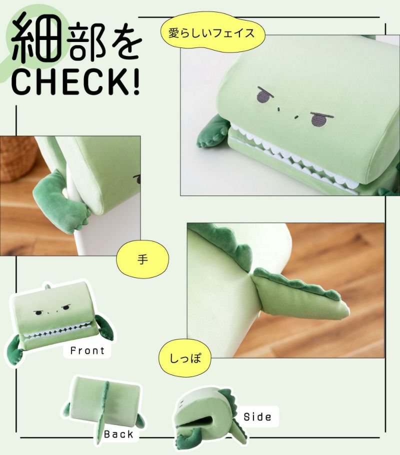 挟んで挟まれて5通りにあなたをお手伝い クッション 腰当て 枕 肘置き 背もたれ かわいい ポップ 恐竜|GABU