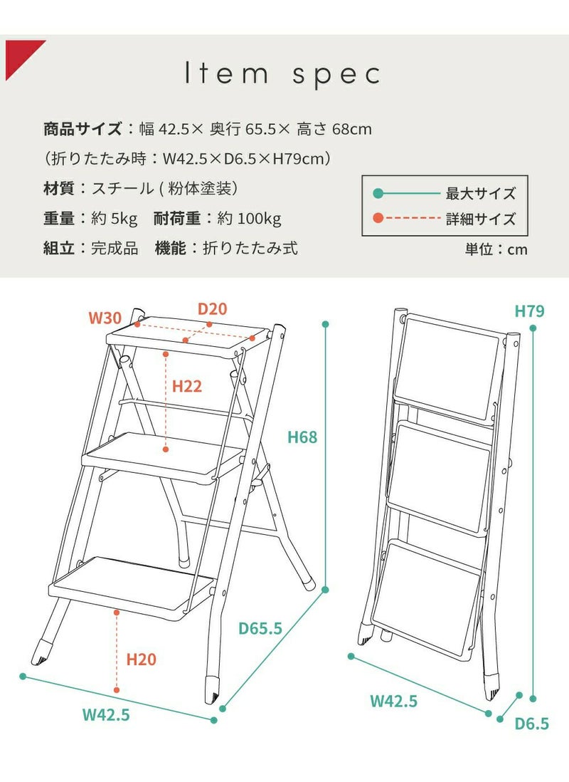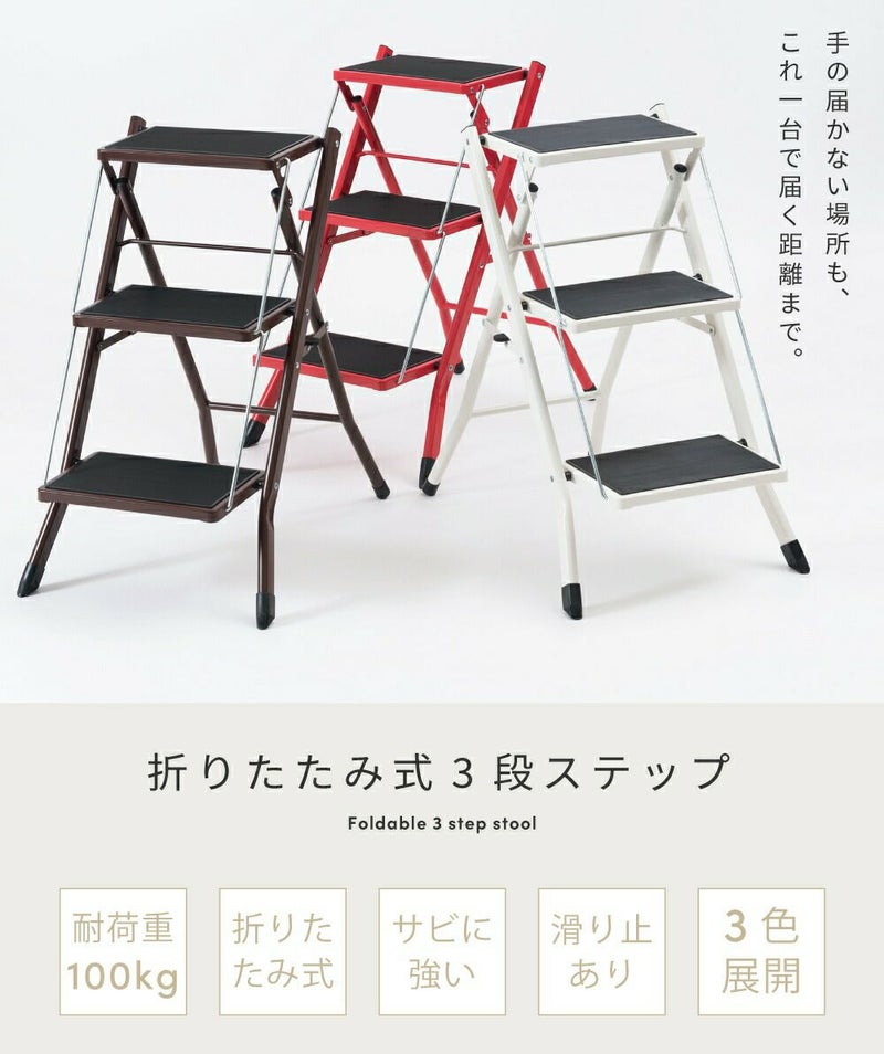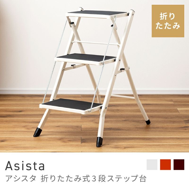耐荷重100kgで安心 踏み台 3段 折りたたみ 耐荷重100kg ステップ台 昇降台 脚立 椅子|Asista