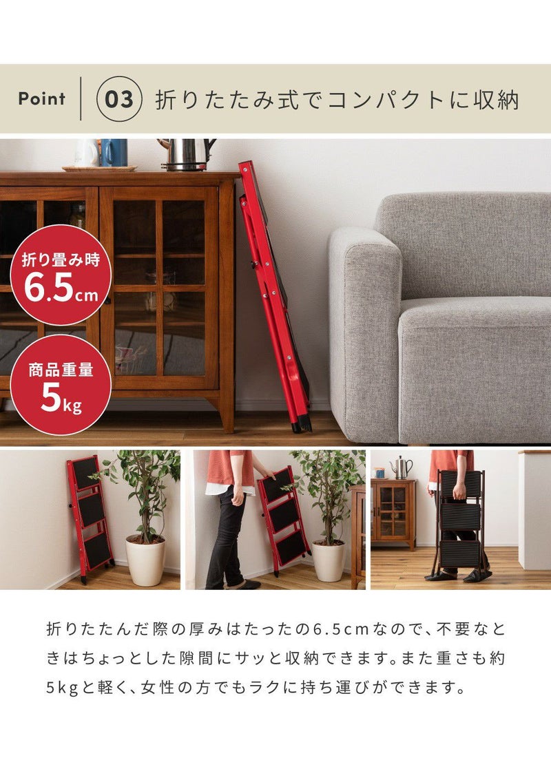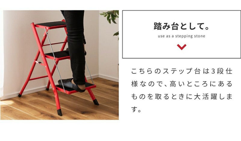 こちらのステップ台は3段仕様なので、高いところにあるものを取るときに大活躍します。