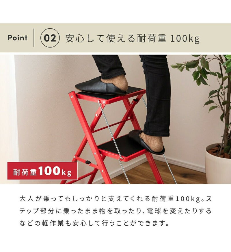 ステップ部分に乗ったまま物を取ったり、電球を変えたりするなどの軽作業も安心して行うことができます。
