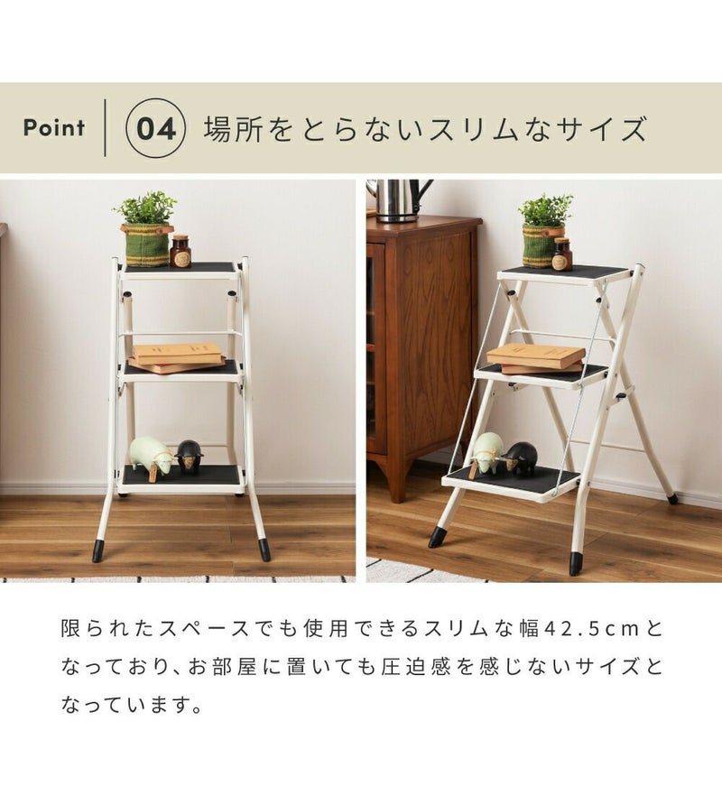脚立 踏み台 ステップ台 おしゃれ はしご 折りたたみ スリム 耐荷重100kg スチール ステップスツール 3段 ディスプレイ ワイド インダストリアル コンパクト
