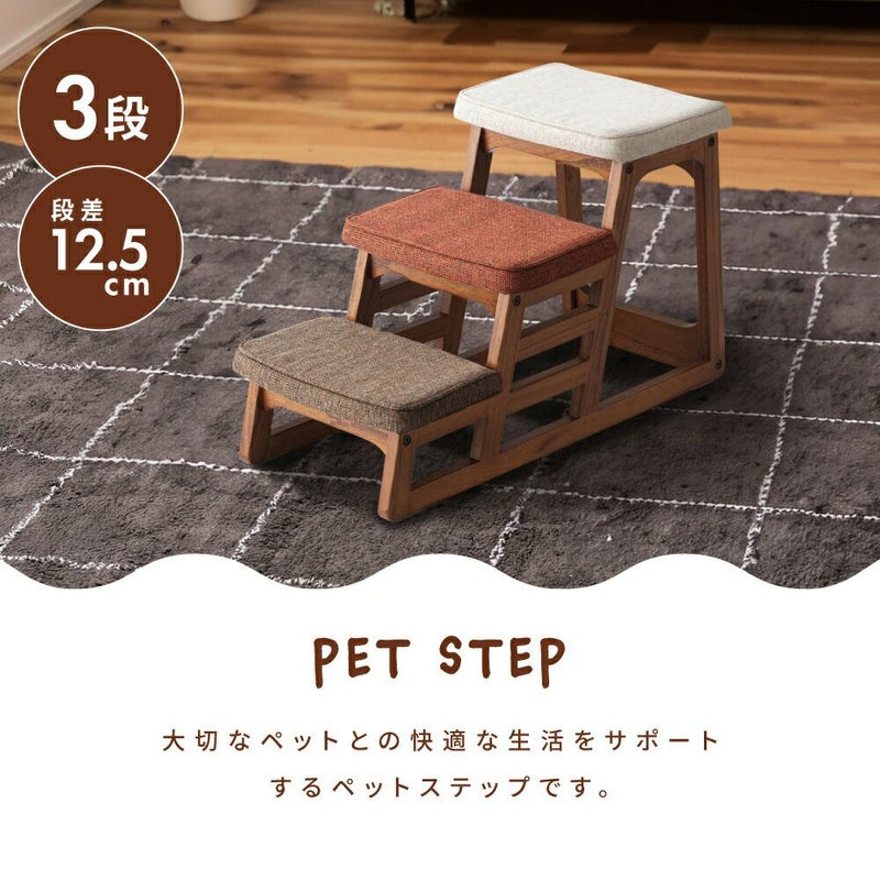 ペットステップ 3段 おしゃれ 北欧 フロアチェア ペット 犬 猫 シンプル 階段 かわいい 背もたれ コンパクト ナチュラル ステップ台 小型 ドッグステップ 踏み台