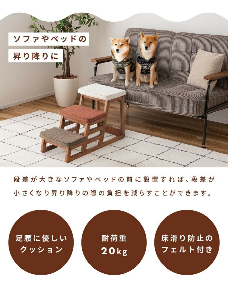 毎日の昇り降りを支えるクッション階段 ペットステップ 高さ41cm 踏み台 おしゃれ ステップ台 3段 木製 天然木|FLONA