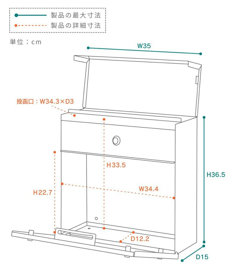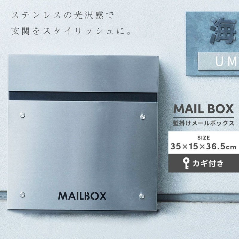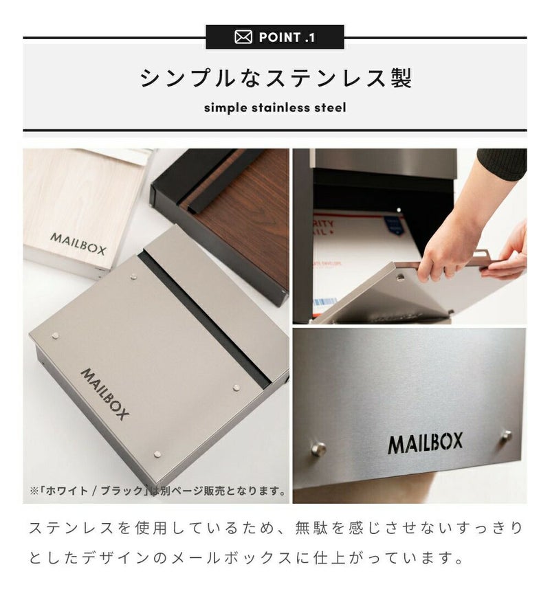 ステンレス製のフロント扉右下には「MAILBOX」の文字が型抜きされており、中身が入っているか確認することができます。