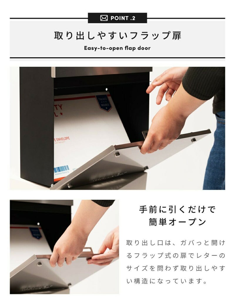 ポスト フラップ おしゃれ 壁掛け 郵便受け シンプル メールボックス 鍵付き ステンレス スタイリッシュ インダストリアル モダン 雨よけ フタ 屋根 新築祝い