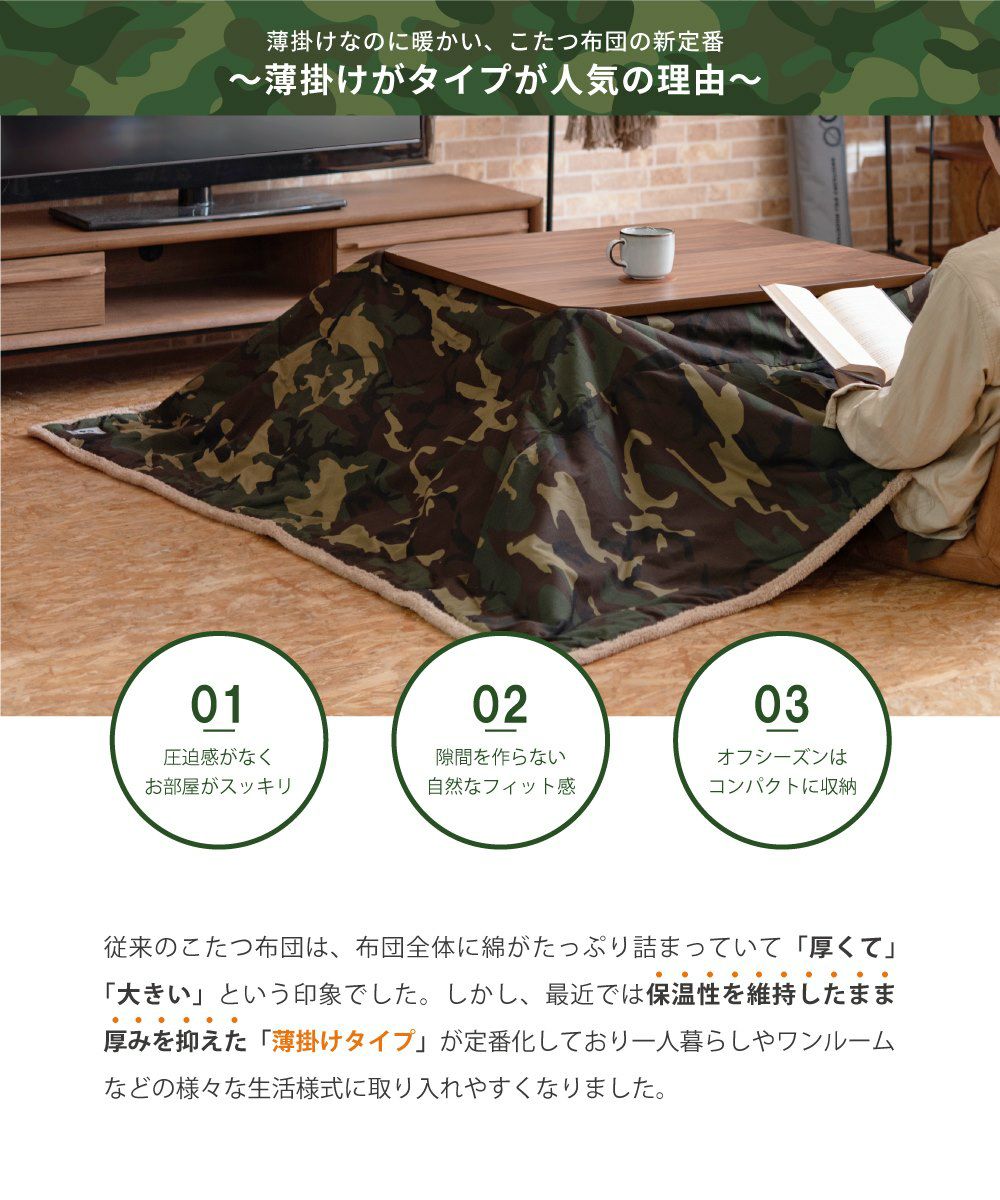 他の画像を見る 迷彩柄でワイルドな雰囲気のこたつ布団 こたつ布団 コタツ布団 こたつふとん 正方形 かっこいい 迷彩 カモフラージュ|WENA 完成品 販売価格 ¥ 13,464 税込 在庫切れ (0) お気に入りに登録する