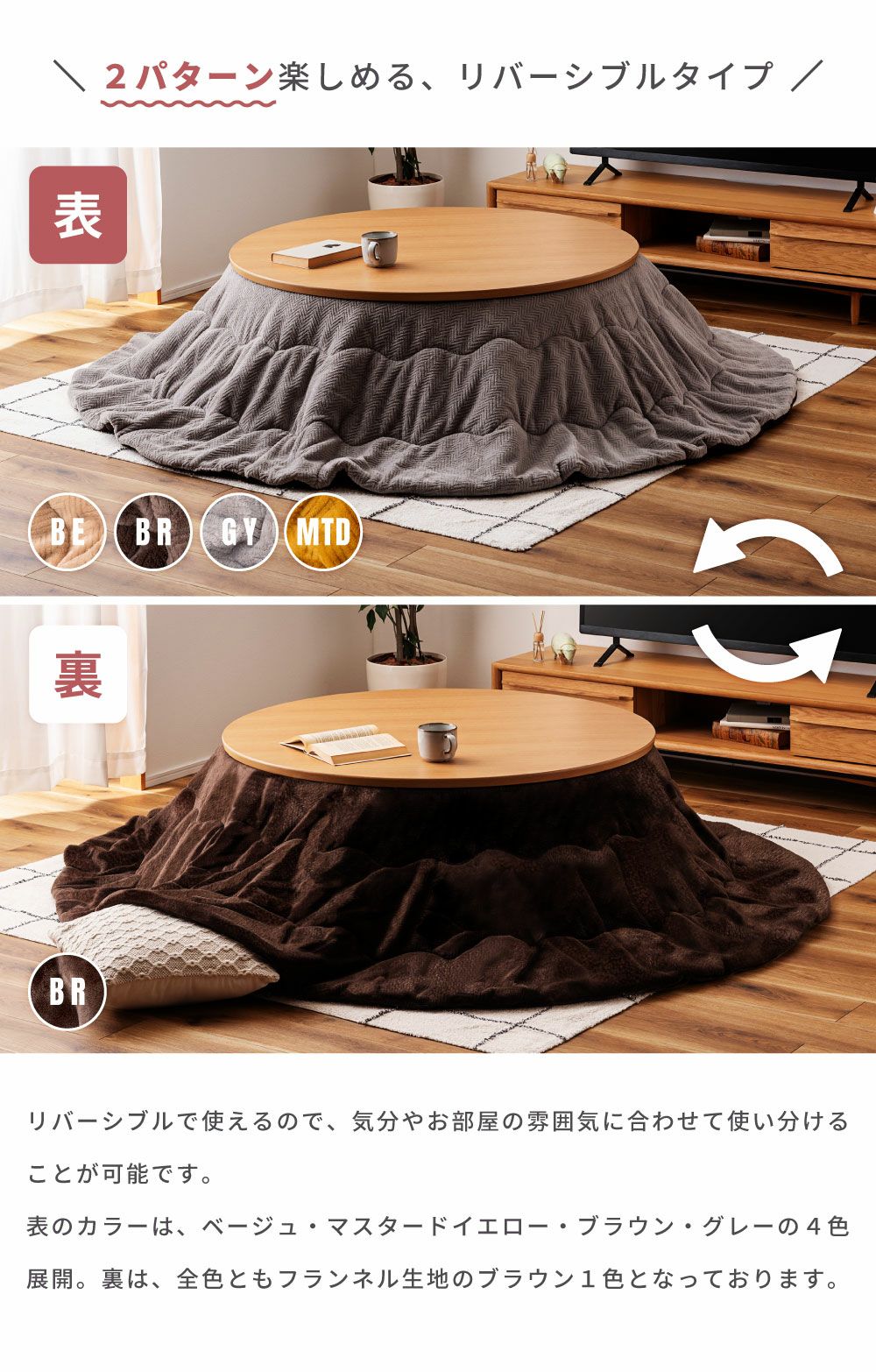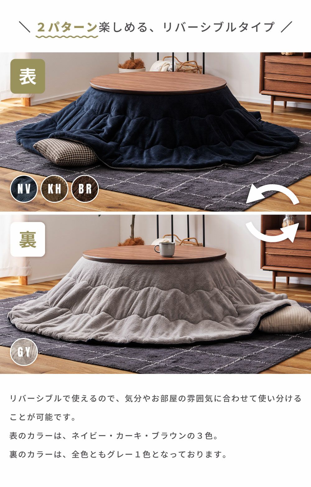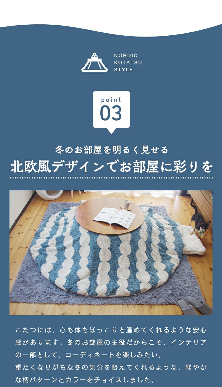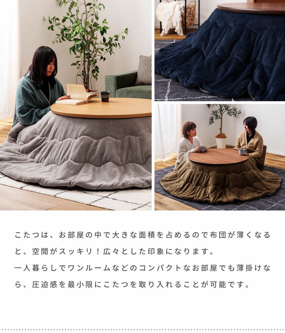 他の画像を見る 裏表使えるリバーシブル仕様 こたつ布団 円形 幅210cm 奥行210cm 2WAY 防寒 冬 こたつ用品|Will 送料無料 ¥ 8,980 税込 在庫切れ (0) お気に入りに登録する