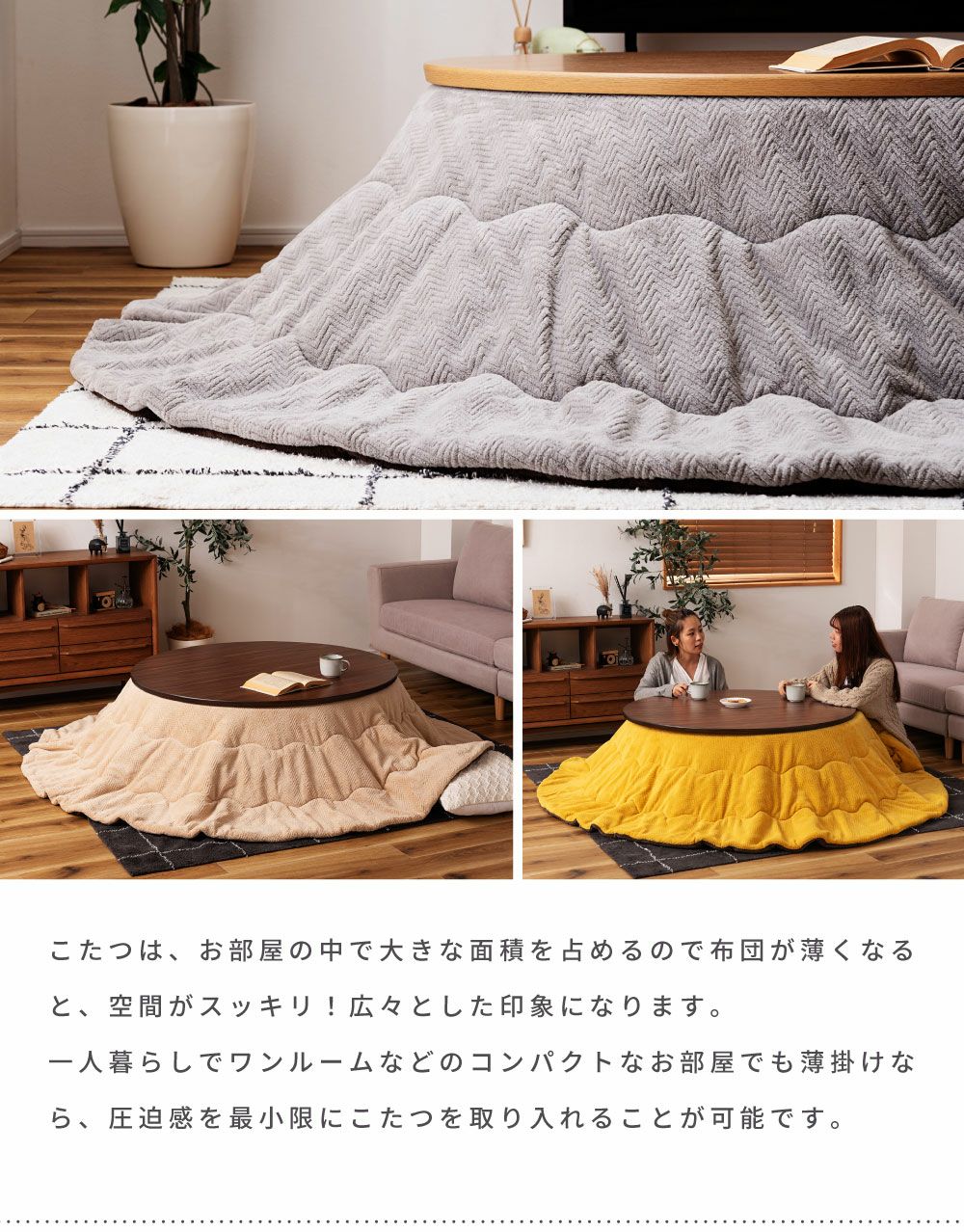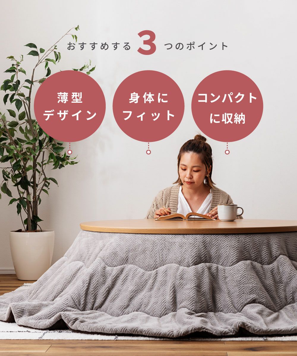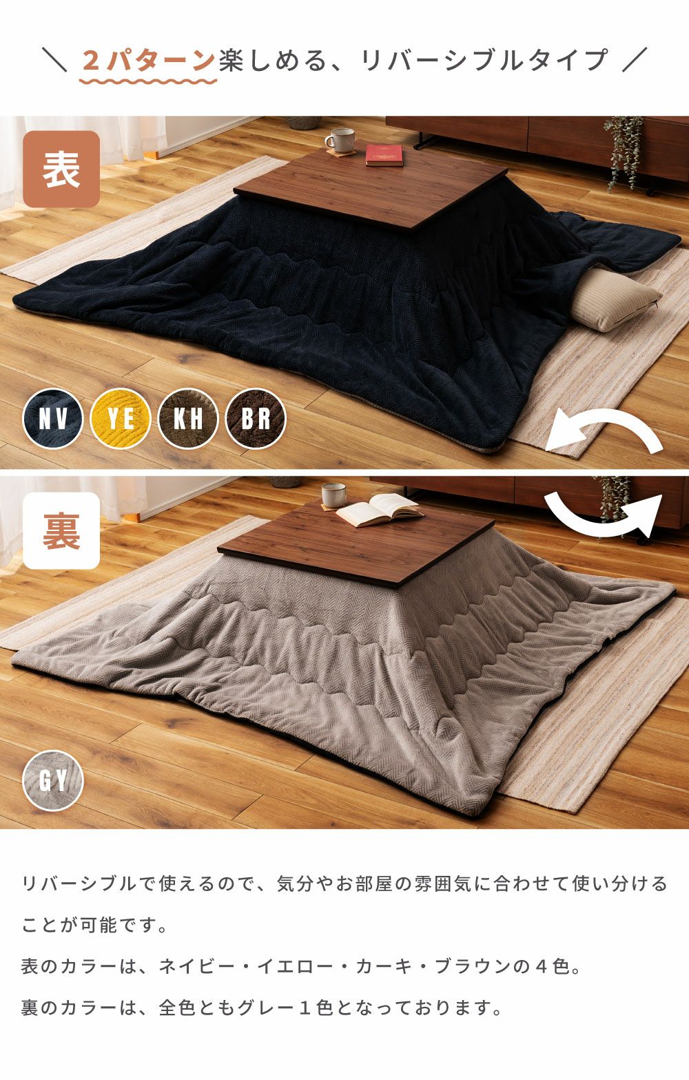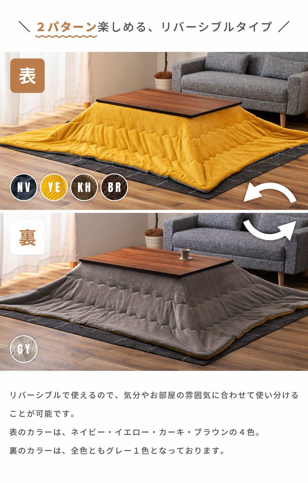 他の画像を見る 裏表使えるリバーシブル仕様 こたつ布団 円形 幅210cm 奥行210cm 2WAY 防寒 冬 こたつ用品|Will 送料無料 ¥ 8,980 税込 在庫切れ (0) お気に入りに登録する