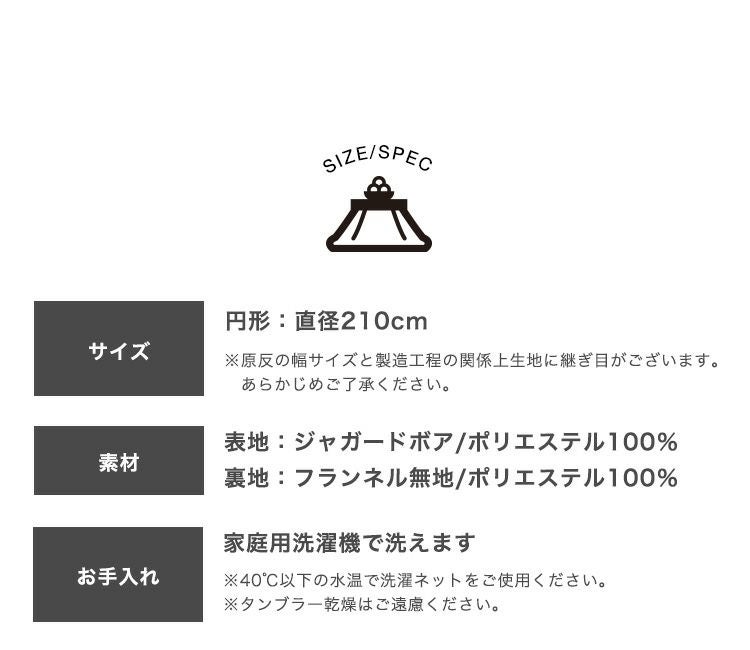 他の画像を見る かわいい立体ジャガードボア柄 こたつ布団 薄手 円形 コタツ布団 225×225cm 丸 ラウンド|nukurin 送料無料 ¥ 8,440 税込 5.00 (2) お気に入りに登録する