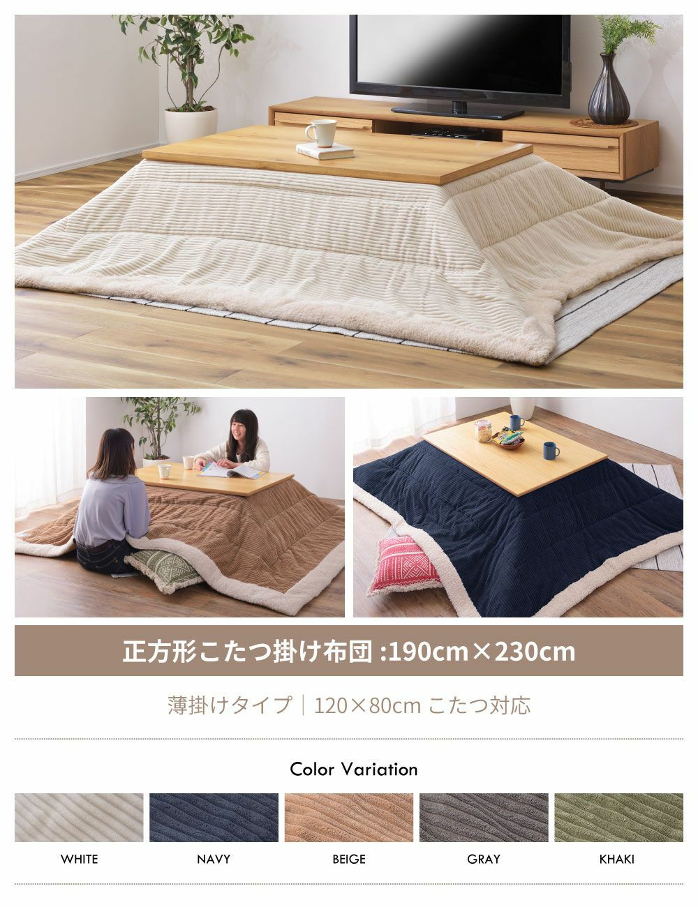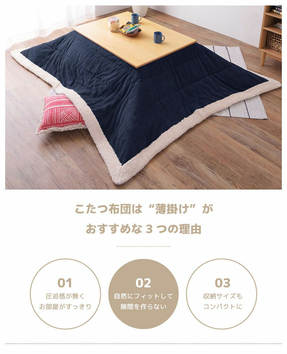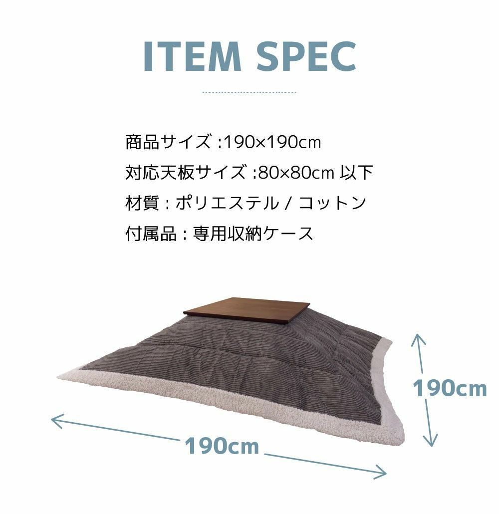 他の画像を見る 手触りの良いコーデュロイのこたつ布団 こたつ布団 正方形 幅190cm コタツ布団 こたつふとん 北欧 ノルディック|Bjorn 送料無料 ¥ 12,320 税込 (0) お気に入りに登録する
