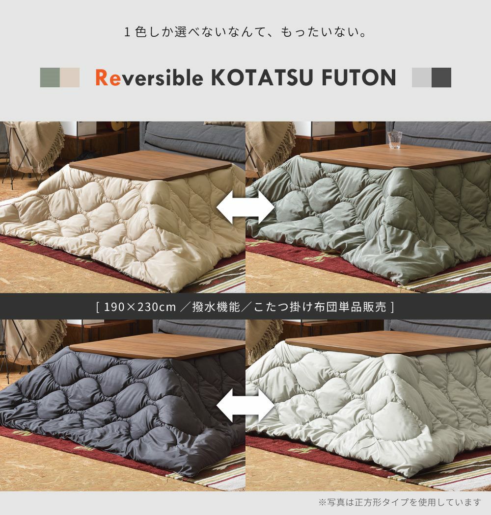 他の画像を見る 軽量ふかふか、持ち運び楽々 こたつ布団 正方形 コタツ布団 こたつふとん ペットの毛つきにくい布団|リバーシブルコタツ布団 正方形 送料無料 ¥ 11,880 税込 (0) お気に入りに登録する