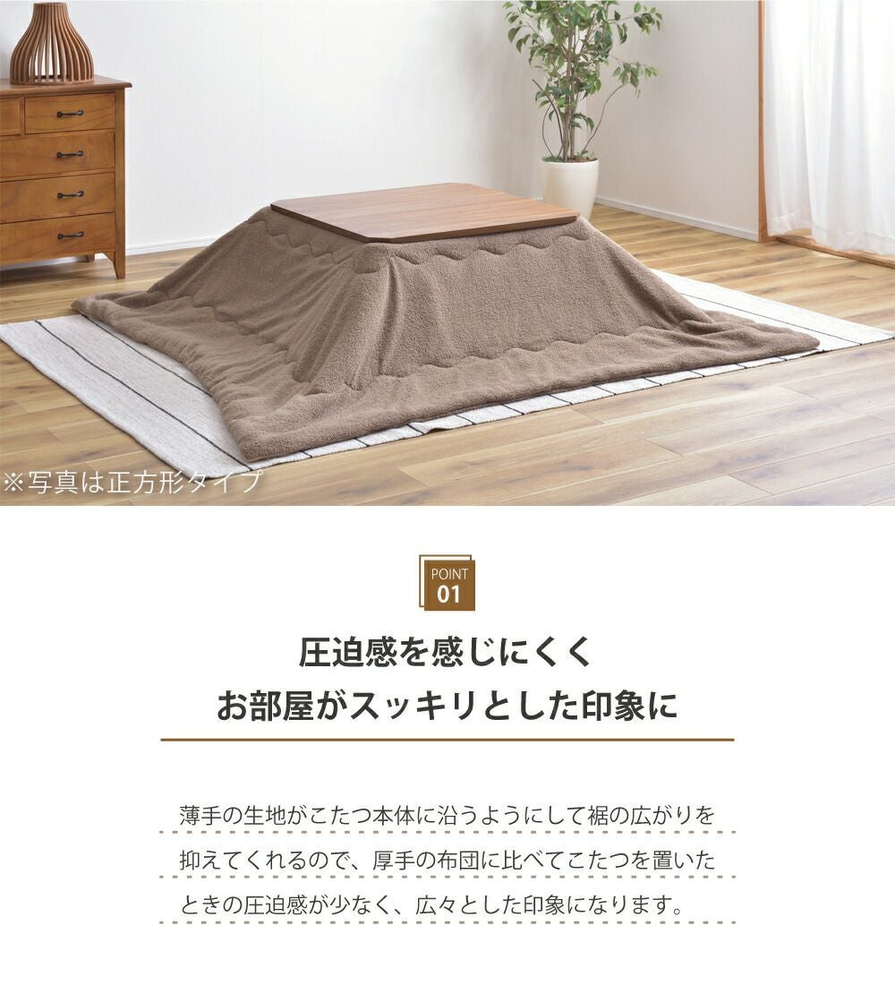 他の画像を見る ふんわりあたたかなこたつ掛け布団 こたつ布団 正方形 幅185cm コタツ布団 こたつふとん 薄手 薄い 暖かい|PYNO 送料無料 ¥ 11,704 税込 (0) お気に入りに登録する