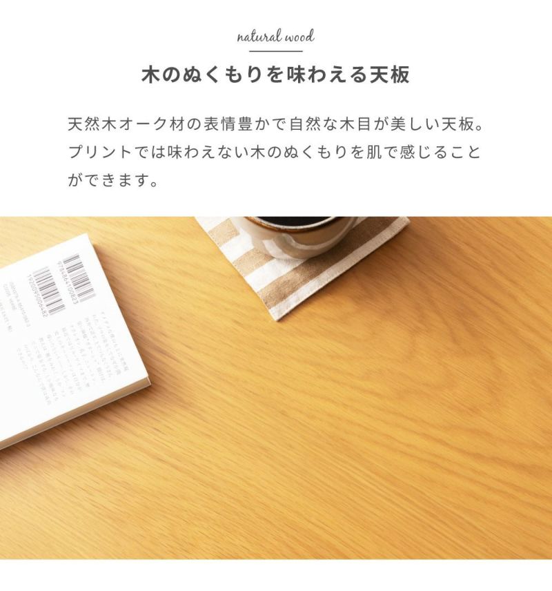 天然木オーク材の表情豊かで自然な木目が美しい天板。