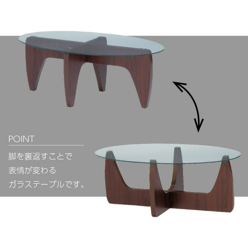 ローテーブル コーヒーテーブル センターテーブル 幅105 ガラス おしゃれ 楕円 丸 木製 茶色 ブラウン 2WAY オーバル型 リビング モダン ブラウン 和モダン 透明 強化ガラス 一人