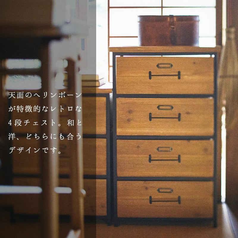 レトロな雰囲気のチェスト チェスト タンス 箪笥 おしゃれ ヘリンボーン 高さ67cm 4段 収納|ZETRA