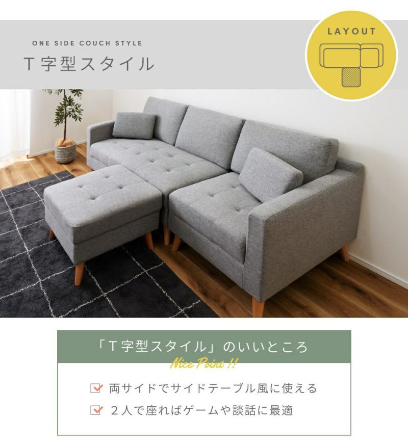片側カウチにすることでL字型になるためローテーブルと合わせても使いやすいレイアウトになります。