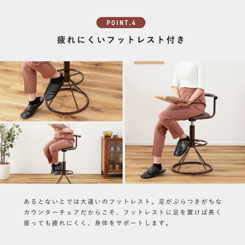 身体にフィットする快適な座り心地 カウンターチェア 昇降式 背もたれ付き 高さ調整 高さ調整 回転式 ハイチェア|THALYN