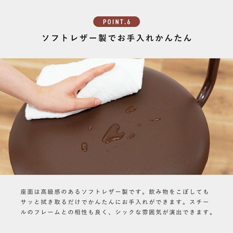 カウンターチェア ハイチェア 昇降 高さ調節 回転 丸 丸椅子 白 ソフトレザー レザー 合皮 スチール シンプル 肘無し カフェ おしゃれ チェア 椅子 背もたれあり