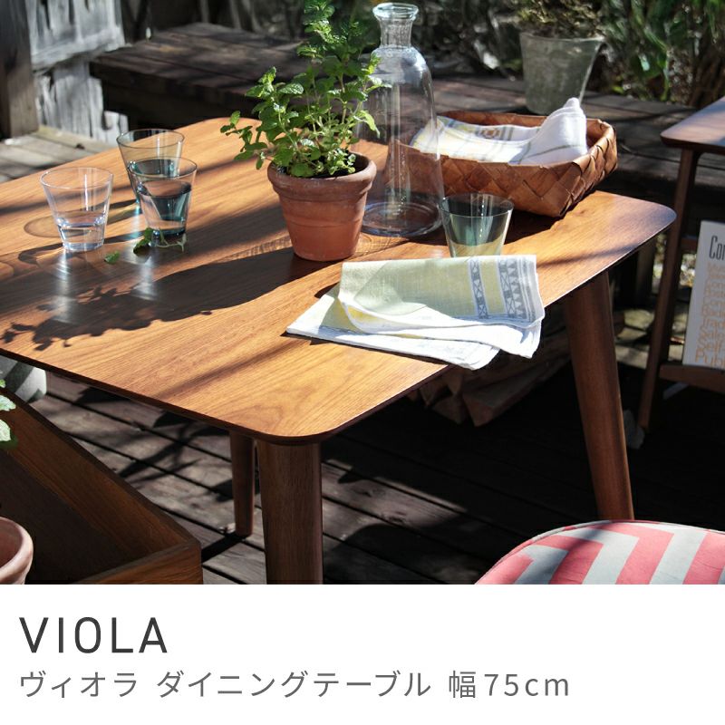 ウォルナットの木目が美しい テーブル ダイニングテーブル 食卓机 おしゃれ シンプル 幅75cm|VIOLA