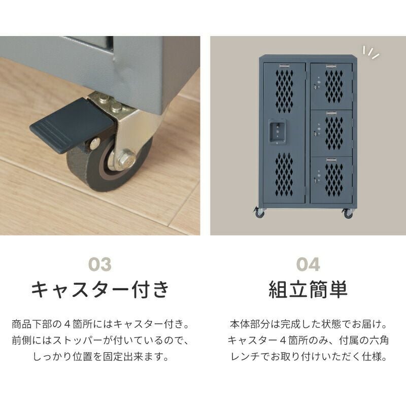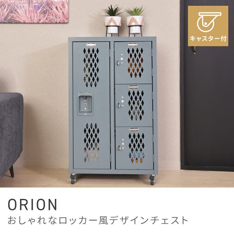 ロッカー風のデザインチェスト チェスト キャスター付き 3段 ワイド ロッカー リビング おしゃれ オシャレ|ORION