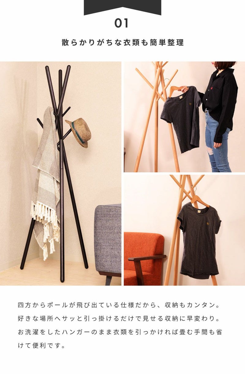 片付け簡単、「引っかけるだけ」収納 ポールハンガー コートハンガー ハンガーポール ハンガーラック おしゃれ 木製|TALYS