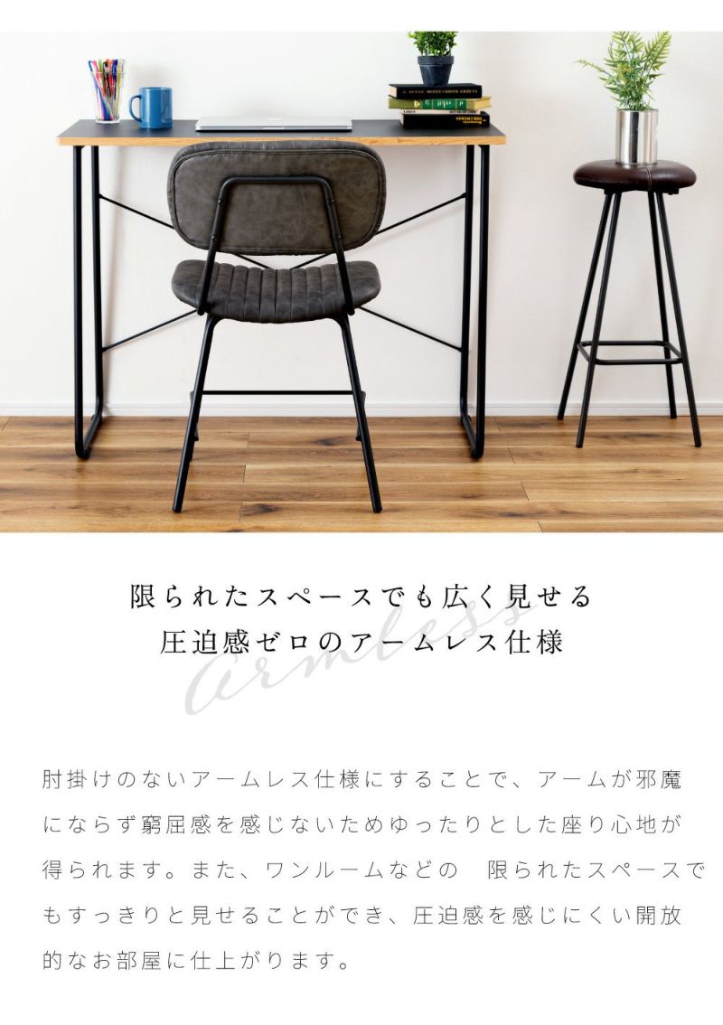 ダイニングチェア 椅子 おしゃれ 食卓 イス レザー 合皮 スチール アームレス 肘なし カフェ風 インダストリアル ヴィンテージ ビンテージ 黒 ブラック ブラウン
