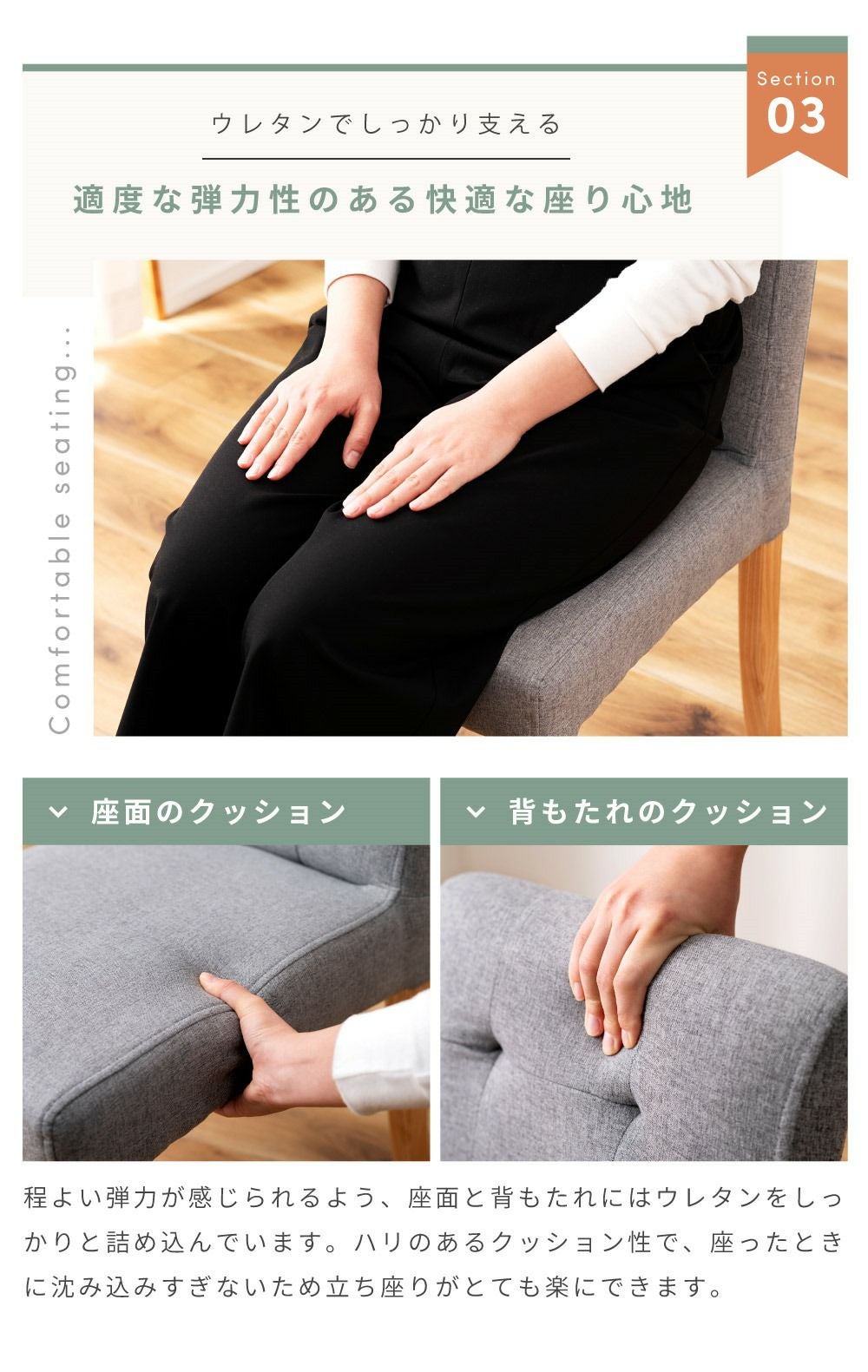 ハリのあるクッション性で、座ったときに沈み込みすぎないため立ち座りがとても楽にできます。
