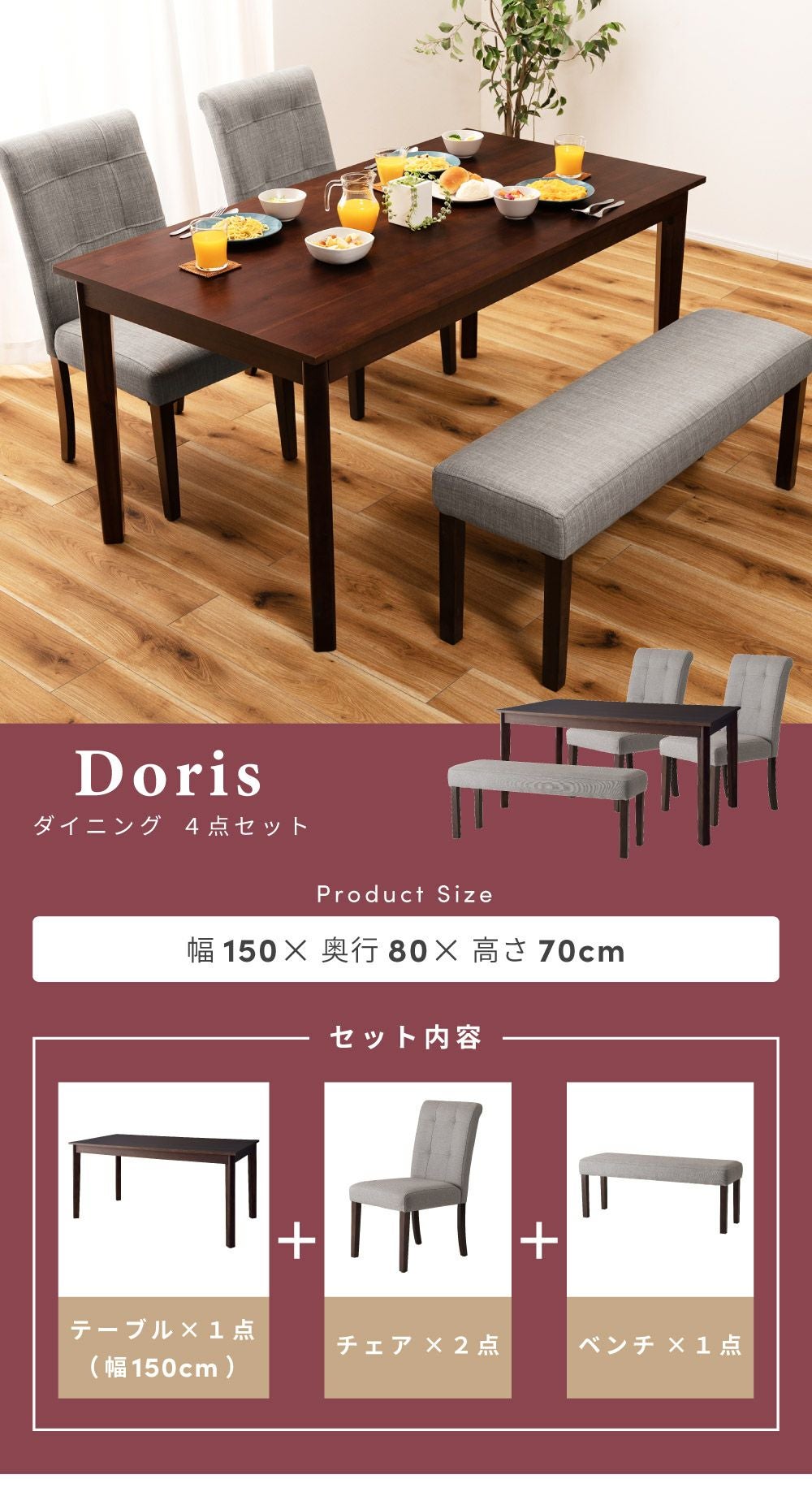 家族の中心になるダイニング150cm [4点セット] ダイニングテーブルセット 4人掛け 4人 150cm 椅子|DORIS